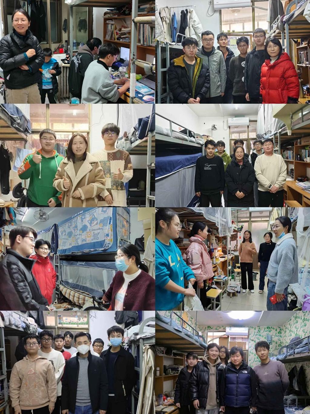 在走访过程中,每到一间学生宿舍,辅导员们都会对宿舍卫生和安全隐患进行排查,强调用电、用水安全,提高学生的安全意识,对环境卫生较好、氛围较活跃的宿舍进行表扬,对存在问题的宿舍提出了整改建议和鼓励关切。同时,辅导员与同学们就学业进展、职业规划和思想动态等方面进行了深入交流,倾听同学们的心声,对同学们进行引导和鼓励,并对同学们提出殷切期望:希望大家加强自我管理,落实安全用电的相关制度,保持整洁有序的宿舍环境,养成健康文明、积极向上的生活习惯,保持乐观开朗、乐于表达的良好心态。