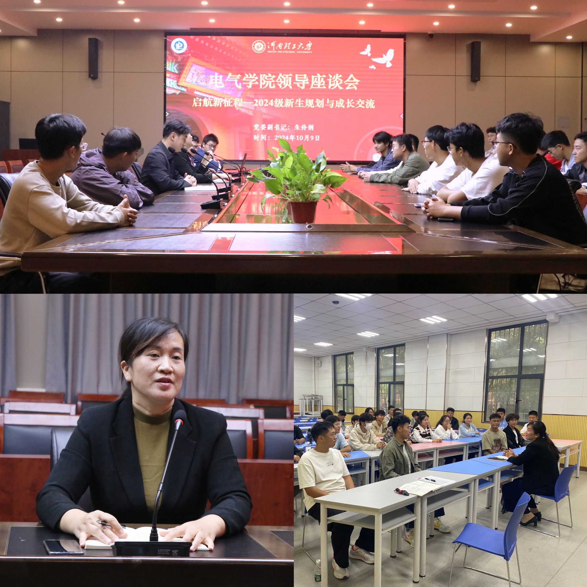 "秋日正暖情亦暖,电气新人知新声"。为帮助新生更快地适应大学生活,正确的引导新生规划方向树立目标。10月9日、14日,电气学院党委副书记朱伶俐分别在电气楼101、104室举办了新生座谈会,新生辅导员及新生代表参加了此次会议。