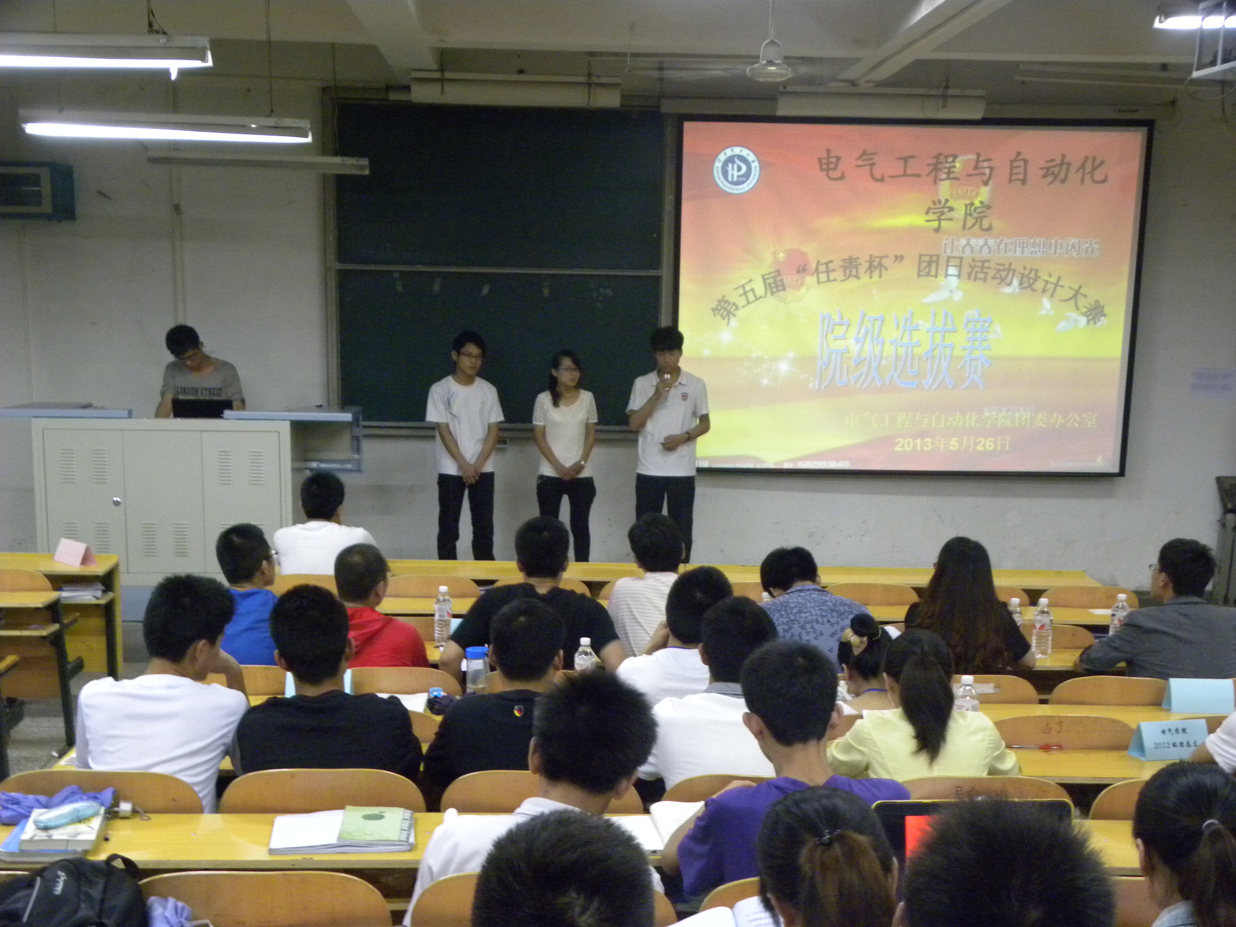 为深入贯穿学习党的十八大精神,进一步阐释习近平总书记提出的为实现国家富强、民族复兴、人民幸福的“中国梦”的内涵,近日,电气学院第五届“任责杯”团日活动设计大赛院级选拔赛在电气楼301举行。电气学院团委书记郑伟、学生会主席兼团委副书记陈斌、团委办公室主任李晓峰以及原团委和宣传中心各负责人周富永、翟慧彦、田甘露、何林巍出席并担任此次活动的评委,来自12级、11级共17支队伍积极参加了此次团日活动设计大赛。比赛由乔宏宇、王兆鑫主持。
