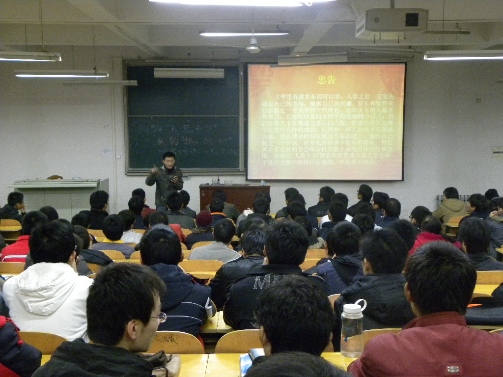 为了增强学生的实践动手能力和创新素质,营造浓厚的校园科技学术氛围,提高学生参加科技学术竞赛的主动性,12月15日下午,由电工电子实验中心、电气学院团委主办,电器开发部承办的“我的‘飞思卡尔’我的‘挑战杯’”系列经验交流会在电气楼201举办。200多名对科技制作和科技竞赛感兴趣的同学参加了交流会。