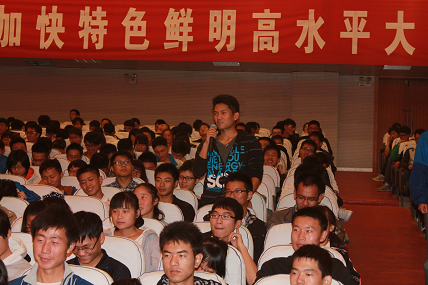 王书记幽默诙谐的开场白,赢得了持久热烈的掌声。此次座谈会共分两个阶段,以相互提问的方式,轻松、愉快地解答了新生迫切关心的问题,同时也让学校和学院领导对新生目前的思想动态有了大致的了解。第一阶段,王书记对在座新生近期的学习、生活、思想状况等方面进行提问。同学们积极踊跃参与,对王书记提出的诸多问题发表了自己的看法,王书记对他们的回答也做了耐心详细的补充。在对河南理工大学印象的问题中,王书记希望新生摆正心态,认清自我,更好更快地融入大学生活,将河南理工大学作为人生中的一个跳板,跨到更高的高度。在谈到大学的本质特征时,他指出大学是对成年人进行教育的学校,是系统的专业性教育。希望同学们及早培养专业兴趣,认真学习专业知识,注重能力培养。王书记还向同学们介绍了大学与大学的本质区别是大学里的人,他强调受教育者和教育者都要培养悟的意识、悟的能力、悟的精神,激励同学们树立更远大的目标,向更高的地方迈进。在讨论大学四年应如何成长的问题时,他指出,大学是人生中极其重要的起点,要解决好定目标、立志向,学知识、长才干,修品德、养习性三个问题,要求同学们从现在起学好基础课,扩大知识面,养成会计划、讲认真、爱钻研、善借鉴、勤动脑的好习惯。第二阶段,同学们对自己想要了解的问题对王书记进行提问。王书记结合自己的人生经历和身边的事例为大家一一做了解答。王书记真挚、幽默的话语让同学们体会到了学校领导对学生成长成才的关怀和期望,拉近了同学们与领导间的关系。最后我院党委书记康全玉对大会做了总结,会议在热烈的掌声中圆满结束。