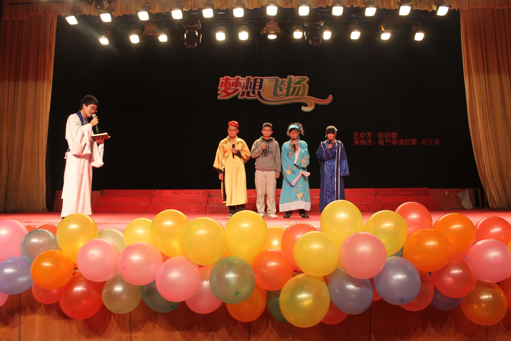 铿锵的韵律,嘹亮的歌声,一曲由电气学院“彩虹队”奉上的《中国军魂》为本次晚会的拉开了帷幕。红旗飘飘,军号响,剑已出鞘,雷鸣电闪,从来是狭路相逢勇者胜,再次将在敌人面前,敢于亮剑的中国军魂精神展现的淋漓尽致。在那钢铁般的侠骨精神之后一曲轻歌劲舞的《对你爱不完》带领我们回到那人世间丝丝的爱恋之中。生活之中有欢喜亦有苦难,一曲由13级新生辅导员皇甫彩虹和谭雪青带来的《阳光总在风雨后》让观众在歌声中感受到,在坚定的信念下一切都将过去的人生理念。“没有什么能够阻挡、你对自由地向往”,一曲由13级新生辅导员王帅独唱的《蓝莲花》唱出了一种坚定不移追求梦想的执着精神。悠扬的乐曲,真情的演唱,让我们再次感受到为人师长生活之中精彩的一面。礼堂喝声迭起,精彩仍在继续。随着音乐的骤变,由学生代表选送的国粹节目——豫剧《收姜维》、管弦二重奏《骏马奔腾保边疆》,在浓郁的传统乐器韵味的音律中等相继登台,给大家带来一场别具生面的视听盛宴。一段充满时代元素信息的相声《领悟大学》,以诙谐幽默的方式展现了现在大学生中多元的人生观和价值观,让13级新生在欢笑中思索自己的大学生涯该如何度过。不知不觉中,本次晚会已接近尾声,在主持人的衷心祝愿声和热烈的掌声中,本次晚会圆满落下帷幕。