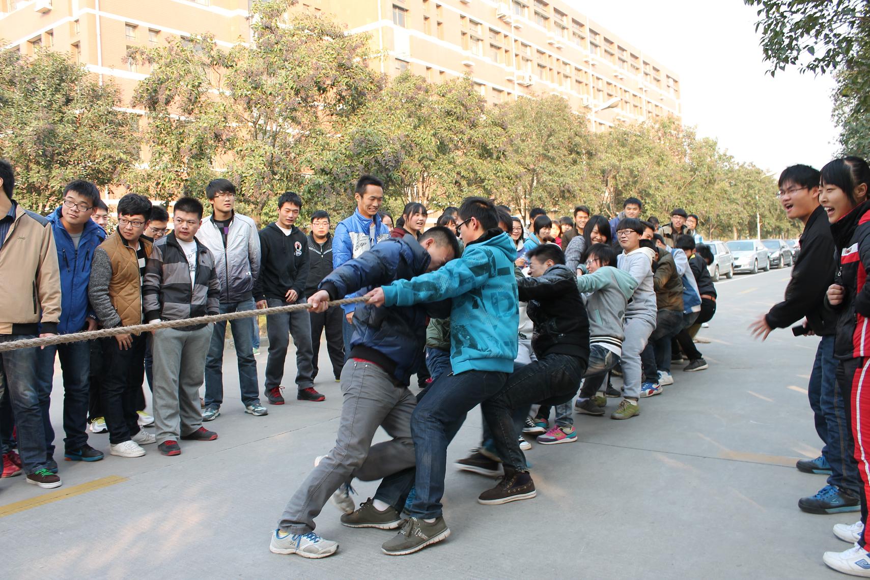 为丰富学生们的课余生活,促进各班级交流,培养学生们团结协作、拼搏进取的集体主义精神,12月3日、4日、9日和11日,我院13级新生在电气楼附近举行了“新生杯”拔河比赛。本次比赛以班级为单位,共33支队伍参加,实行男女混合、三局两胜制。
