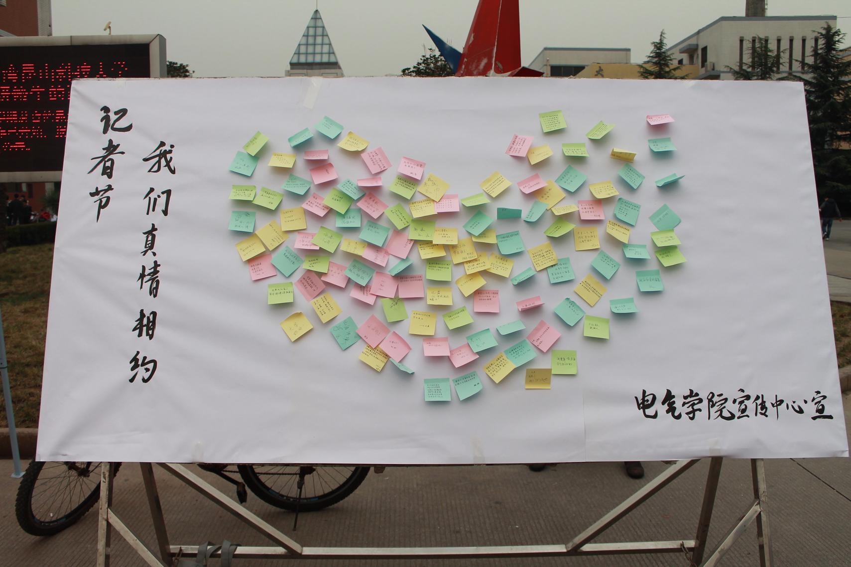 传承新闻事业,宣传记者风范。为庆祝中国第14个记者节,向同学们宣传新闻知识,培养实践能力,加强同学们对我校记者这一职业的认识。11月16日——19日在学院餐厅东门和电气楼,我院宣传中心举办了以“如若有你,便是晴天”为主题的记者节系列活动。