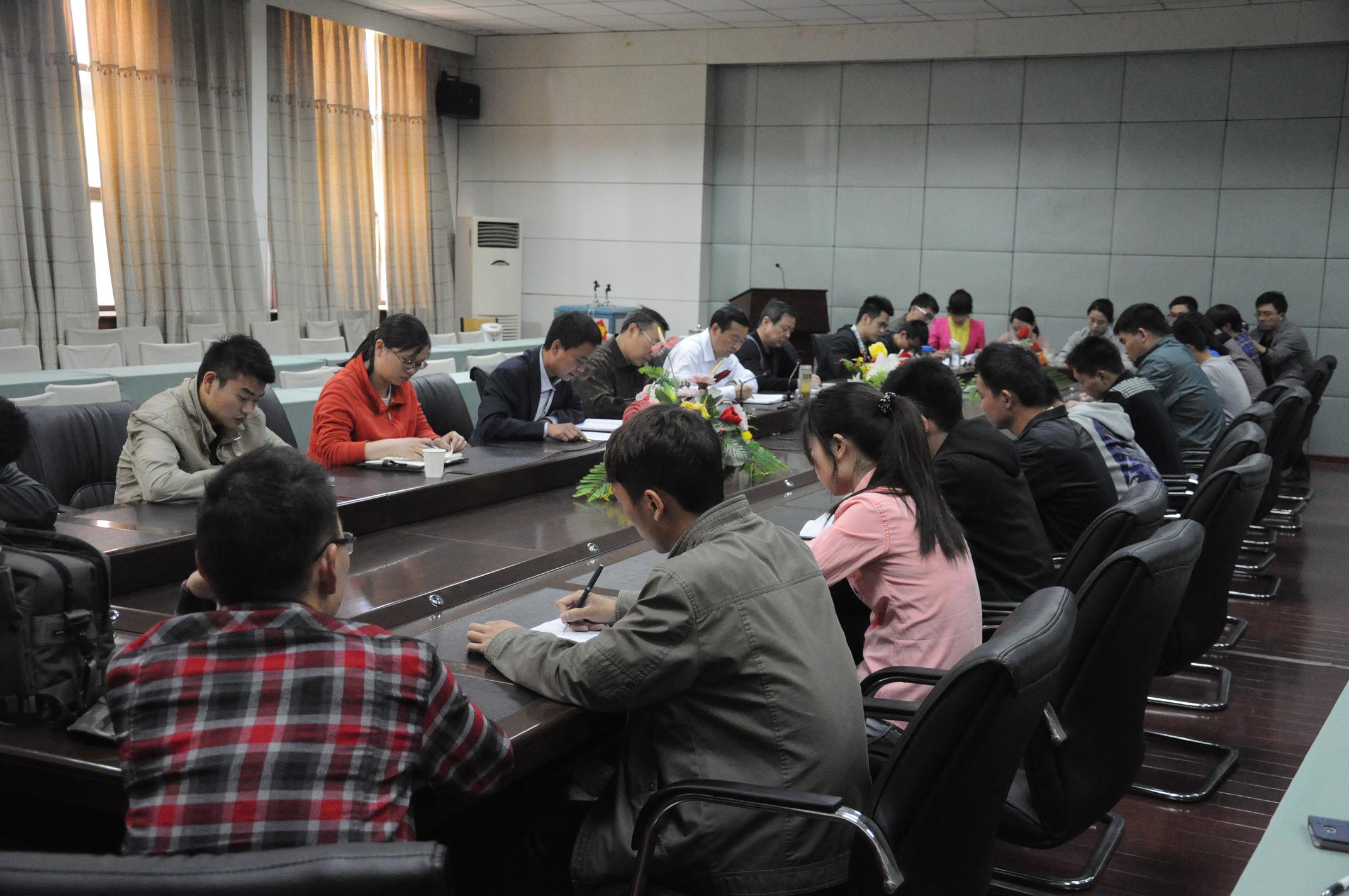 近日,校党委副书记兼纪委书记张国臣莅临我院就学生党建工作和群众路线教育实践活动进行调研,校党委组织部部长郑广华陪同调研。我院党委书记、副书记及相关同志和部分学生党员代表40余人参加调研座谈会。调研座谈会由院党委书记康全玉主持。