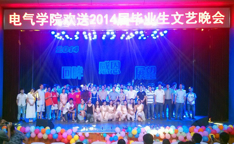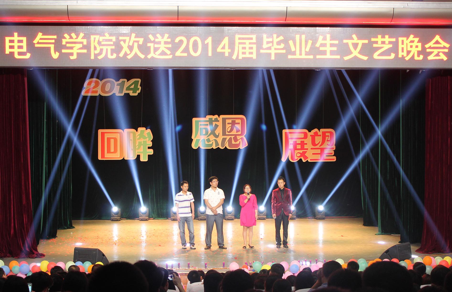 这是一场流光溢彩的晚会,是一个令人难忘的夜晚,对2014届毕业生来说更是一场心灵的沟通和旅程。道不尽的离别情,诉不完的留恋意。今天的离别不是结束,而是新的开始。衷心祝愿电气学院2014届毕业生在未来的岁月里乘风破浪,再创辉煌,以优异的成绩回报母校。