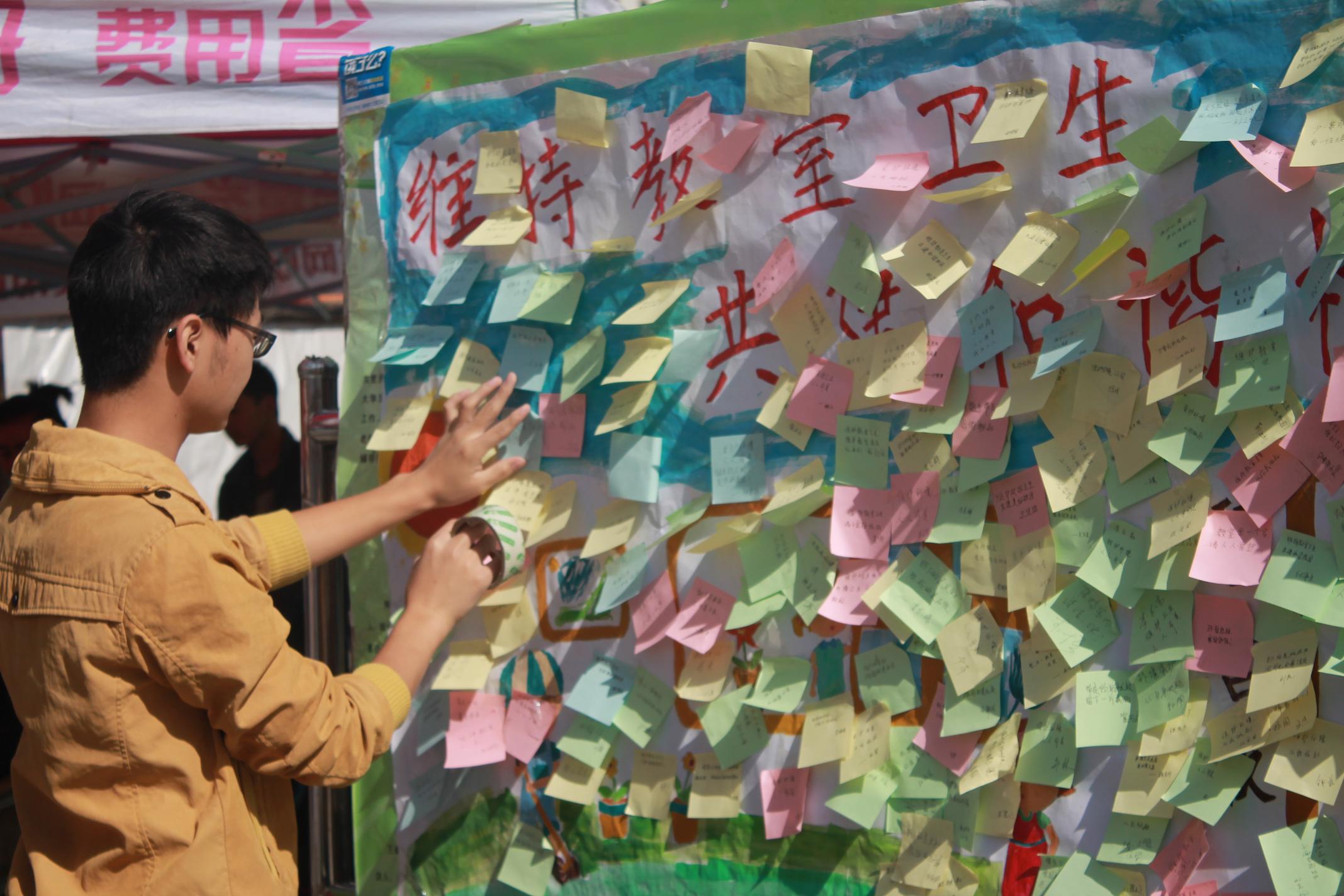 活动伊始,我院的志愿者们积极主动地向同学们宣传本次活动的主题,并耐心讲解教室维洁对维护校园与自身形象的重要性。活动开展不久便吸引了大多同学的关注并得到了肯定,不少同学表示此次宣传活动的主题反应了他们内心的真实想法,承诺会努力保持教室整洁,不留下废弃物,为营造洁净的教室献出自己的力量,并且在宣传板上贴上了带有自己口号的便利贴——“保持教室卫生是我们义不容辞的责任”、“一屋不扫,何以扫天下”等标语,还在宣传横幅上郑重签下了自己的名字。本次活动开展顺利,现场气氛热烈,得到了同学们的一致好评。最终同学们合影留念,并将条幅挂于公告栏与电气楼大厅,引导同学们积极保持教室卫生。