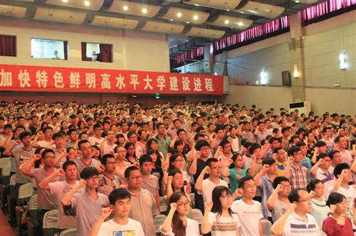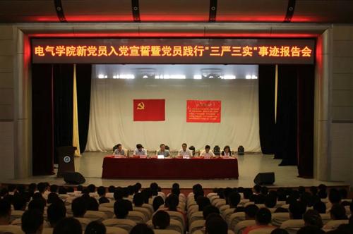 7月1日下午,我院在学校小礼堂召开了新党员入党宣誓暨党员践行“三严三实”事迹报告会。电气学院党委书记康全玉、党委副书记王瑞参加会议,学院团委、党政办、学工办负责人和优秀教职工党员代表、全体学生党员及入党积极分子参加会议。会议由王瑞主持。