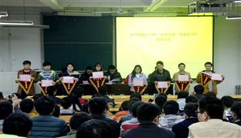 11月20日下午,我院在电气楼303举办电气学院2015年“菁菁校园”宿舍文化节表彰大会。会上,首先对各获奖寝室颁发锦旗和证书。随后标兵宿舍代表、特色宿舍代表以及优秀宿舍代表上台发言,他们借助PPT展现自己的宿舍特色,并回忆同宿舍人员相处的点滴及对大一生活的感悟。最后我院学生会主席魏震宇从安全、文明、卫生以及友谊等方面向大家提出关于宿舍文化建设的建议。