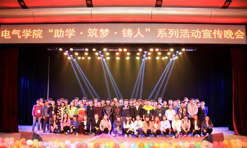 3月19日晚,由电气学院学生工作办工处主办、院学生会承办的“助学-筑梦-铸人”主题系列活动宣传晚会在学校小礼堂隆重举行。我院党委副书记王瑞、团委书记郑伟、学工办主任李伟伟及各位辅导员与14级15级学生代表参加了此次晚会。