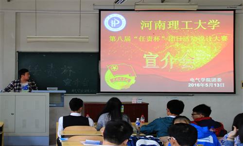 ??为深入贯彻中央党的群团工作会议精神,全面落实团的十七届五中全会部署任务。5月13日下午,我院第八届“任责杯”团日活动设计大赛宣介会在学院104教室召开,15级辅导员杨兴,学院团委委员及15级各班团支书参加了会议。