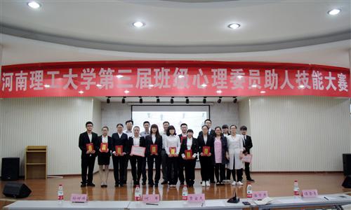 经过激烈角逐,李培菁、利敏、孙权等10名心理委员荣获“河南理工大学十佳心理委员”荣誉称号。评委们也对选手们的表现进行了精彩点评,对他们的工作表示肯定。最后评委为获奖选手颁奖并合影留念。
