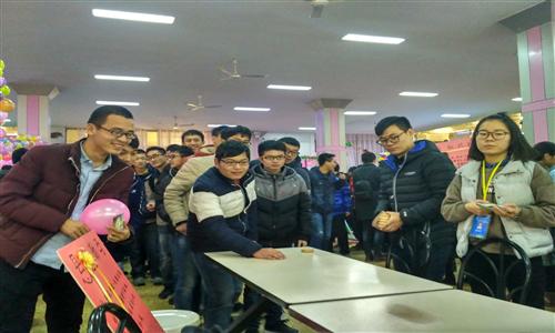 下午7时,游园活动正式开始。四个精心设计的小游戏吸引了众多师生,活动现场人声鼎沸。“悬崖勒马”推出的象棋,犹如脱缰的骏马,能否停在红线内完全靠自己的力度,虽有难度,具有一定的挑战性,但却吸引了众多师生前来参与;“速战速决”则是由猜拳决定胜负,胜方持锤,负方持盾,持盾者反应稍有过慢就会被锤击中输掉本局游戏,所以此游戏非常考验反应能力和手速,现场时不时传来尖叫声,引来围观师生阵阵欢笑;“猜歌之王”一次参赛5人,最先听出歌名者即为获胜。非常考验参赛者的记忆力,难住了不少“英雄好汉”;而“头脑风暴”则是边数豆子,边回答数学问题,非常考验手速和计算能力,看似很难做到,然而参与者不仅豆子数得精确,而且回答问题对答如流,现场气氛异常活跃。游戏之余,师生互道新年,送上彼此最美好的祝愿。晚上10时,游园会圆满结束。