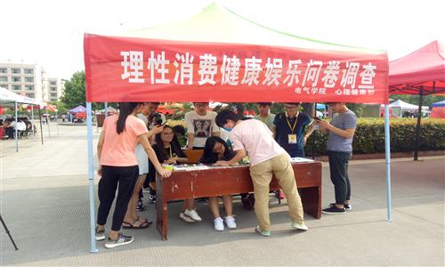 为了进一步加强和改进大学生心理健康教育工作,积极培育大学生理性平和的健康心态。5月23日下午,由校心理健康教育咨询中心主办,我院承办的第十九届大学生心理健康教育宣传周——“理性消费 健康娱乐”问卷调查活动在学苑餐厅东门成功举行。
