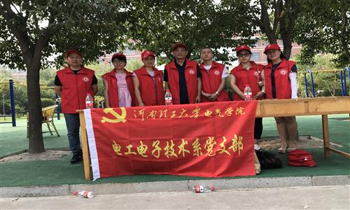 为培育和践行社会主义核心价值观,加强校园精神文明建设,扎实推进我校精神文明单位的创建工作,2017年8月12日上午,电气学院电工电子技术系党支部的党员同志们戴着小红帽,在河南理工大学的滨河花园小区开展了“迎新风,创文明---志愿服务我先行”的主题党日活动。
