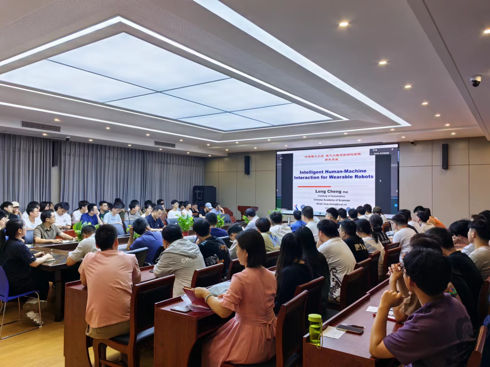 应电气工程与自动化学院邀请,中国科学院自动化研究所教授,国家杰出青年基金、优秀青年基金获得者程龙于6月25日下午,在电气楼101为全院师生作“可穿戴机器人的智能人机交互”学术报告,报告会由钱伟院长主持,全院师生200余人参加。