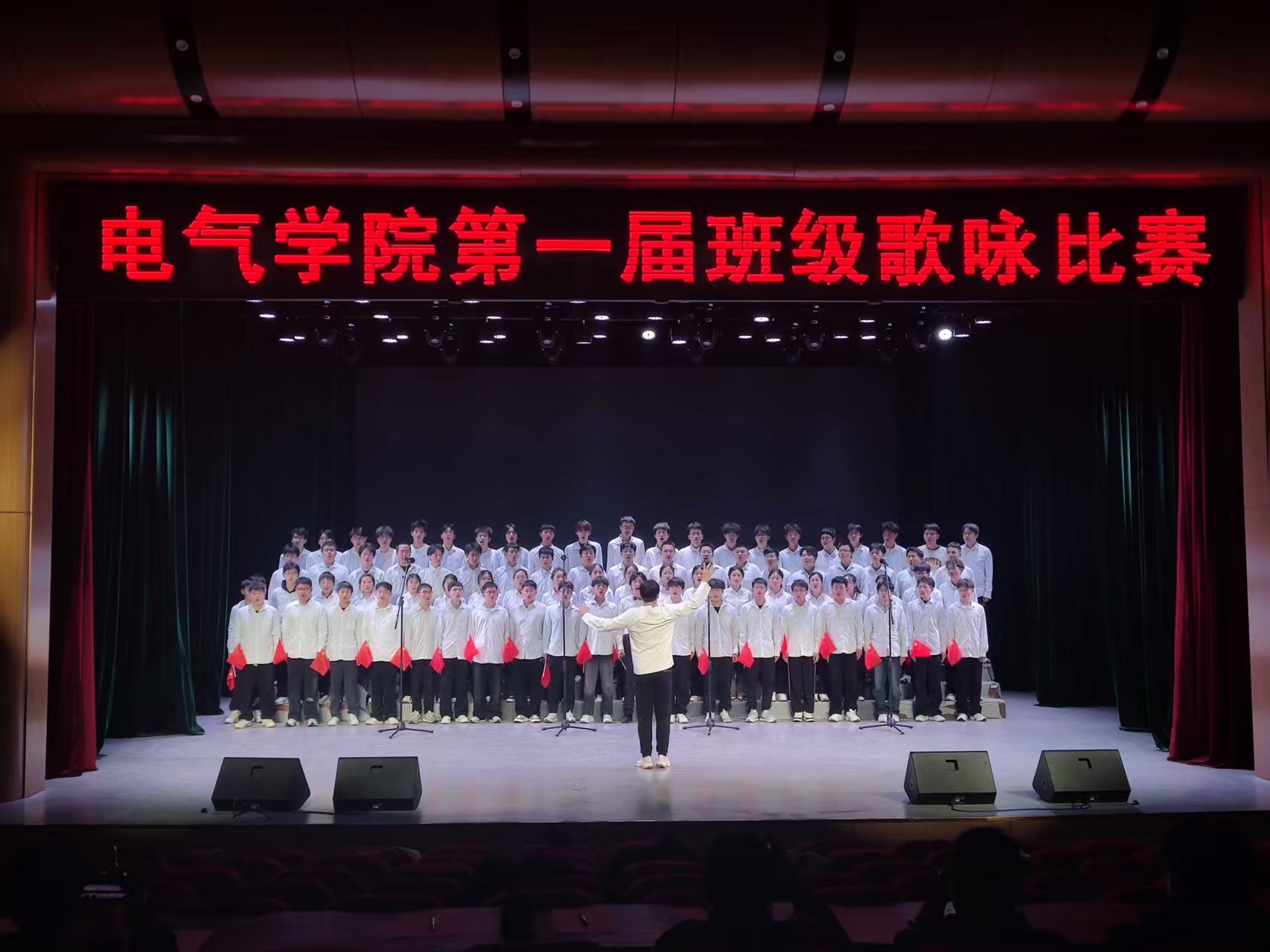 为厚植爱校情怀、凝聚班级力量,3月2日晚,电气学院首届班级歌咏比赛在小礼堂隆重举行。来自2024级各专业的7支代表队同台竞演,以青春之声展现电气学子昂扬风貌。