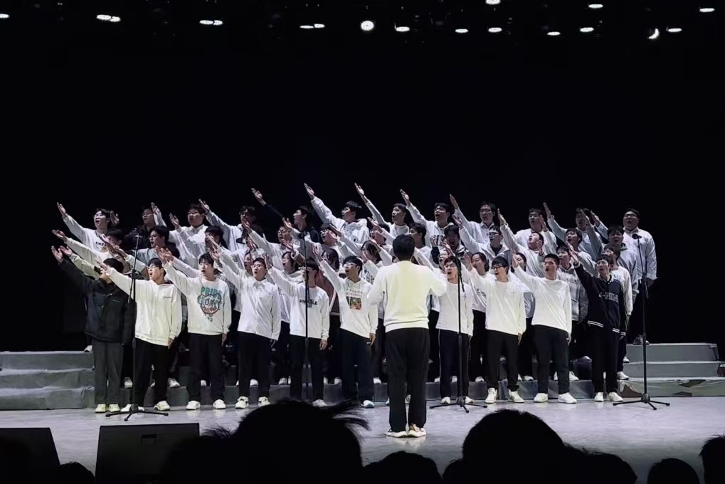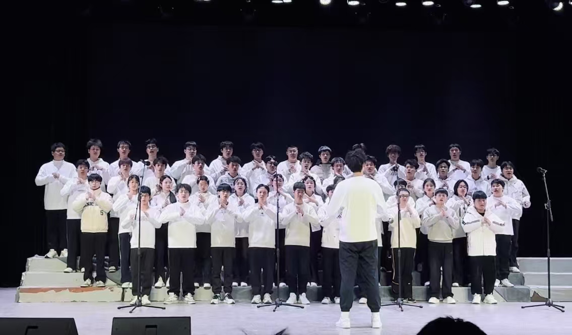 舞台上,各班着装统一、精神饱满。指挥手势精准有力,领唱深情动人,合唱声部和谐。既有气势磅礴的豪迈演绎,亦有温暖细腻的深情诉说。台下掌声与喝彩交织,荧光随节奏摇曳,礼堂化作激情与荣耀的海洋。经评委综合评定,电气专业2队凭借《黄河大合唱》的出色表现摘得桂冠。