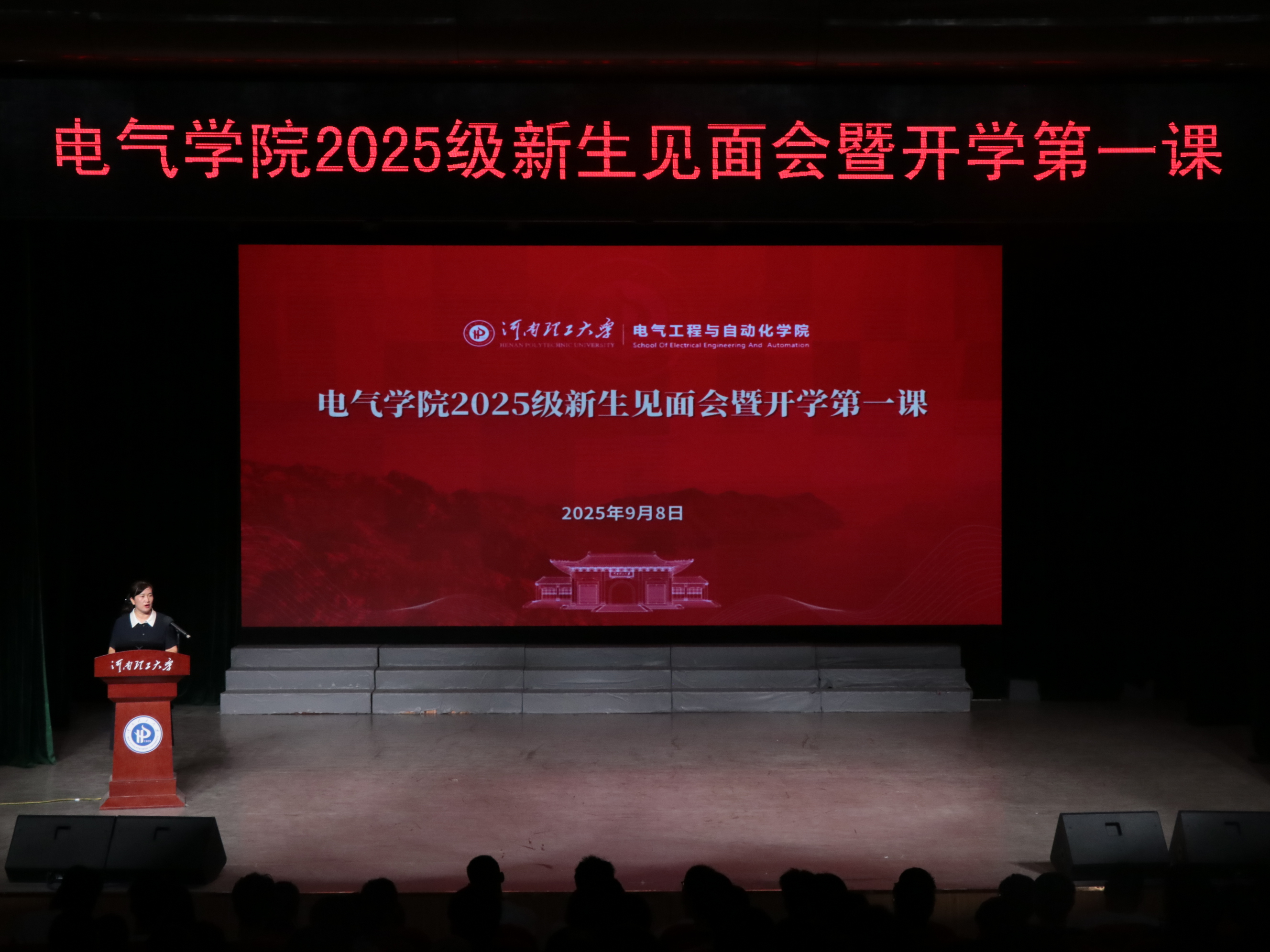奋楫扬帆启新程,勇毅前行向远方。9月8日上午,电气学院于南校区小礼堂举行了2025级新生见面会暨开学第一课,学院全体领导班子成员、辅导员及大一新生参加了本次活动。活动由院党委副书记朱伶俐主持。
