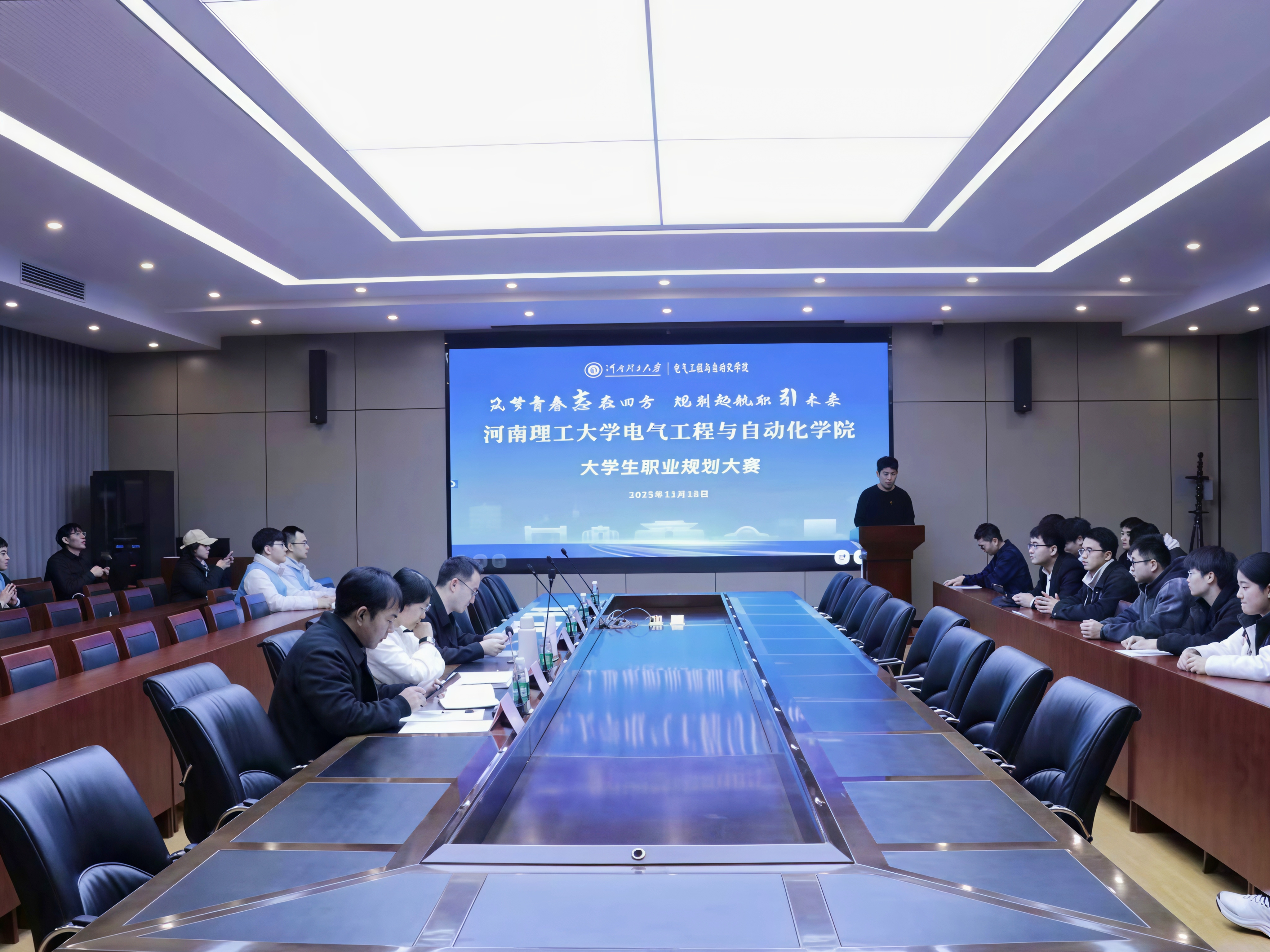 2025年11月18日下午,电气学院于电气楼101室举办大学生职业规划大赛院赛。本次大赛聚焦职业规划演讲展示,旨在引导学生树立正确的职业观和成才观,为学生的职业发展点亮明灯。
