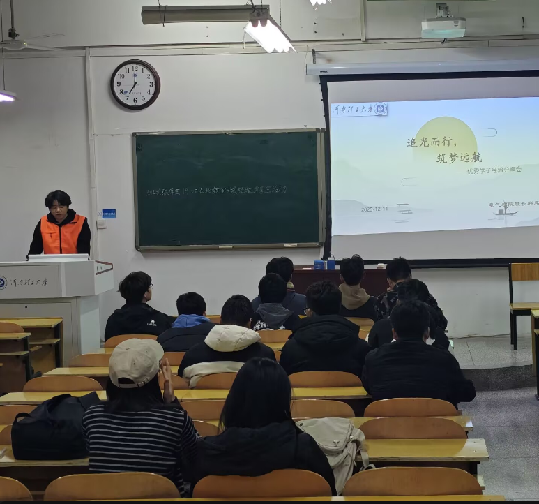 为深入贯彻落实《河南理工大学关于开展2025年学风建设活动的通知》精神,电气学院班长联席会于12月11日晚在电气楼205举办了“追光而行,逐梦远航”优秀学子经验分享会。